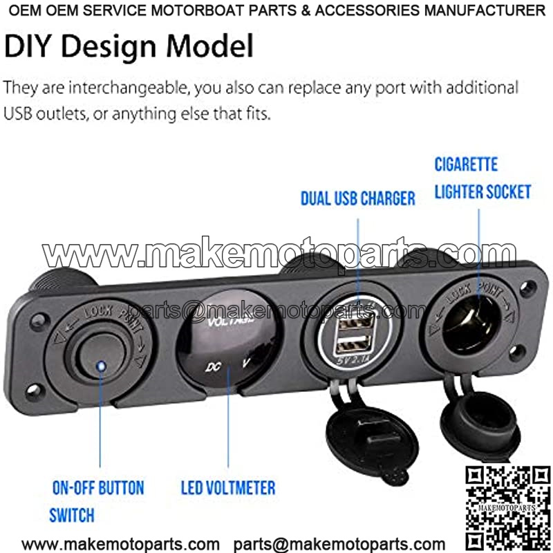 4 in 1 Charger Socket Panel – This 12v socket panel designed with 12v rv usb outlet + LED digital display voltmeter+ 12v cigarette lighter outlet + LED rocker toggle switch. Convenient for install and operate. Also detachable to replace other charger sockets or anything else that fits.