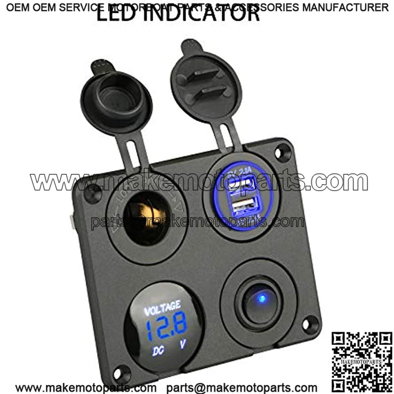 4 in 1 Multifunction Panel Power Outlet Socket Charger with 12V Cigarette Socket, Blue Digital Voltmeter, Double USB Power Outlet Socket, ON-Off Toggle Switch