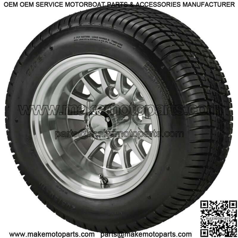 (4)Golf Cart 205/50-10 Tire on 10×7 Machined/Silver 14-Spoke Wheel Free Freight