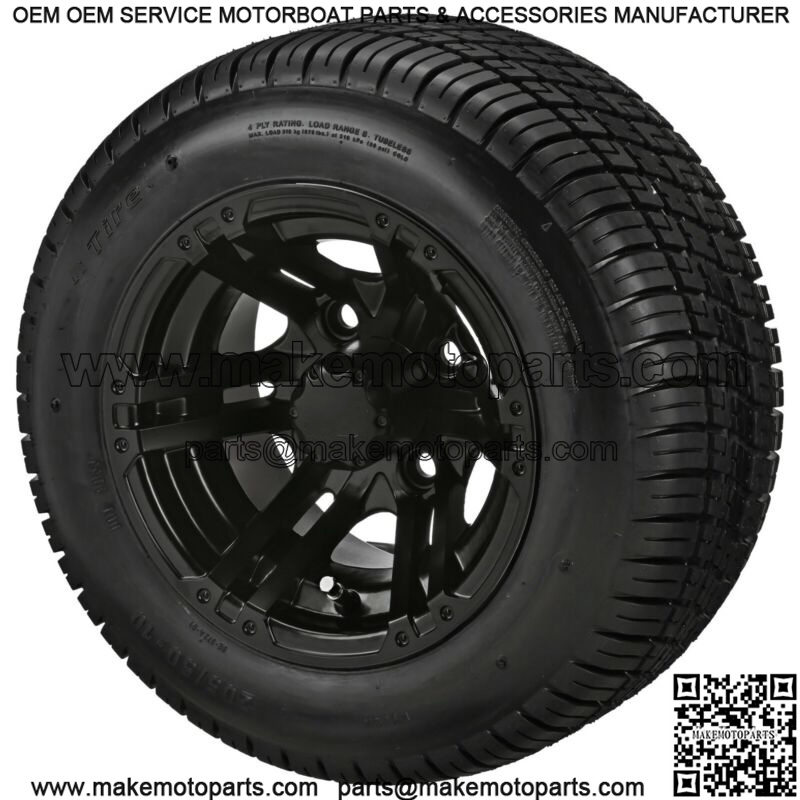 (4)Golf Cart 205/50-10 Tires on 10×7 Gloss Black Yukon Wheels Free Freight