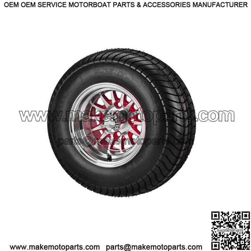 (4)Golf Cart 205/65-10 DOT Tires on 10×7 Machined/Red 14-Spoke Wheels