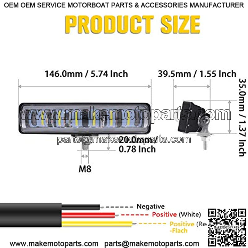 Parameters:Power up to 12.9Watts/bulb, waterproof:IP68;Black wire for negative pole(-); Red wire for positive pole(+) (white light); Yellow wire for signal power supply(+)(amber light);Size:5.74×1.55×1.37inch.