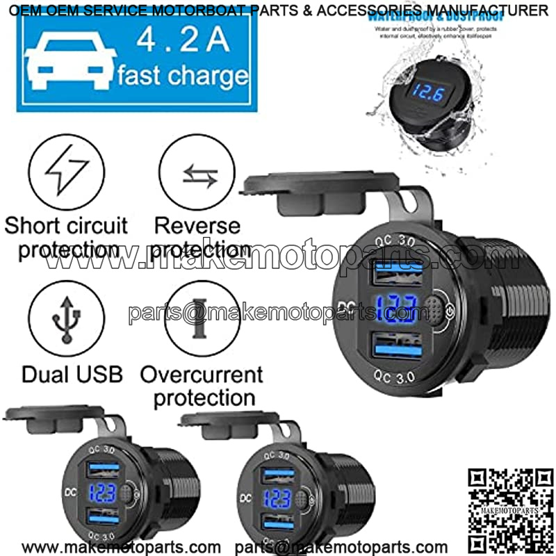 ![[5 Pack]12V USB Outlet, Dual USB QC 3.0 Socket Waterproof Power Outlet 12V/24V 2.1A & 2.1A with Blue LED Voltmeter and Power Switch for Car Golf Cart Boat Marine Bus Truck RV Marine Motorcycle etc.](https://makemotoparts.com/wp-content/uploads/2025/11/CDQ.00939.jpg)