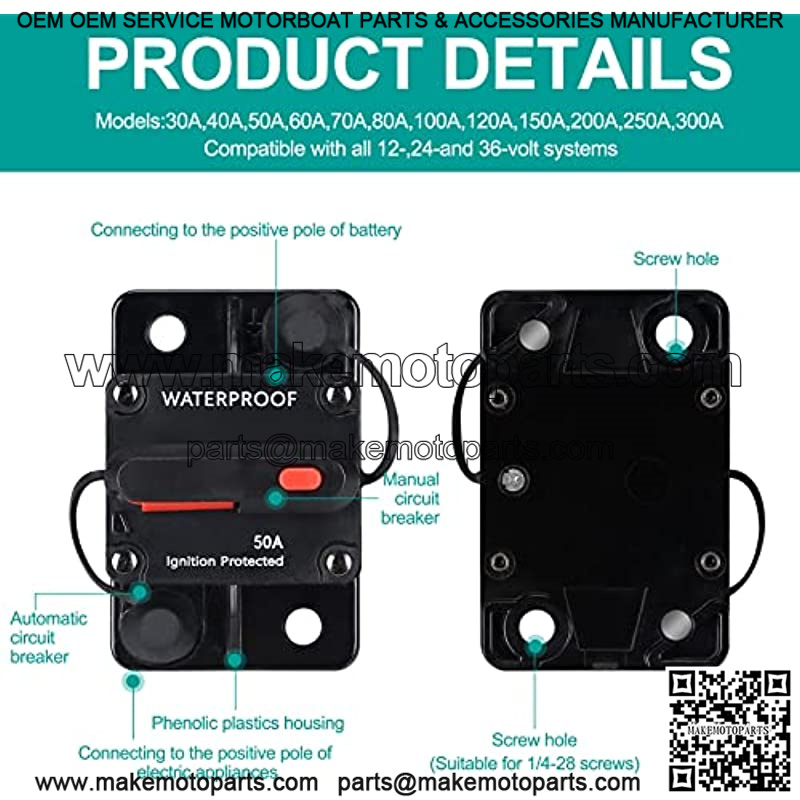 50 Amp Circuit Breaker,with Manual Reset,Waterproof, 12V-48V DC, 30-303A,for Car Marine Trolling Motors Boat ATV Manual Power Protect for Audio System Fuse