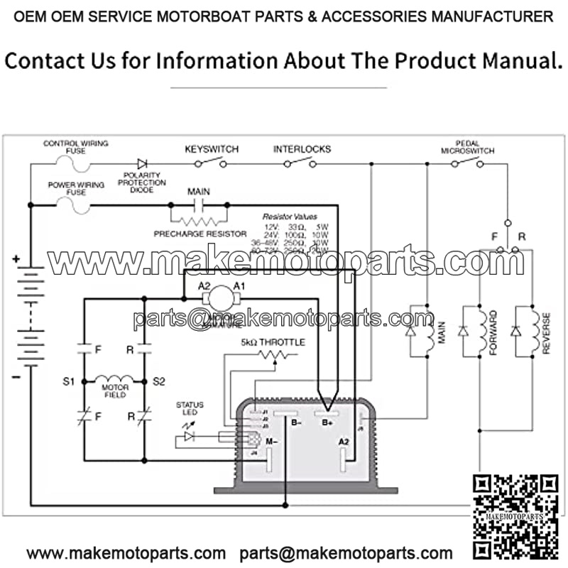 Key Features: For CURTIS Model 1205M-5603 Norminal Battery Voltage (Volts): 48V (default setting) or 36V1 Minute Current Rating (amps): 5005 Minute Current Rating (amps): 3501 Hour Current Rating (amps): 200Plug Braking (A2 Busbar): YesPWM operating frequency: 15.6 kHzLogic input current: < 2 mAStatus LED output current (max.): < 2 mATen throttle types can be used with these controllers:Type 0: 2-wire potentiometer, 0?C5k?? Type 1: 2-wire potentiometer, 5k???C0 Type 2: single-ended 0?C5V input Type 3: 2-wire potentiometer, 4.6k???C0 Type 4: 2-wire potentiometer, 5.5k???C0 Type 5: 2-wire potentiometer, 1k???C0 Type 6: ITS input Type 7: single-ended 6.3?C10.6 V input Type 8: single-ended 6?C12 V input Type 9: single-ended 3-wire potentiometer, 0?C5k??