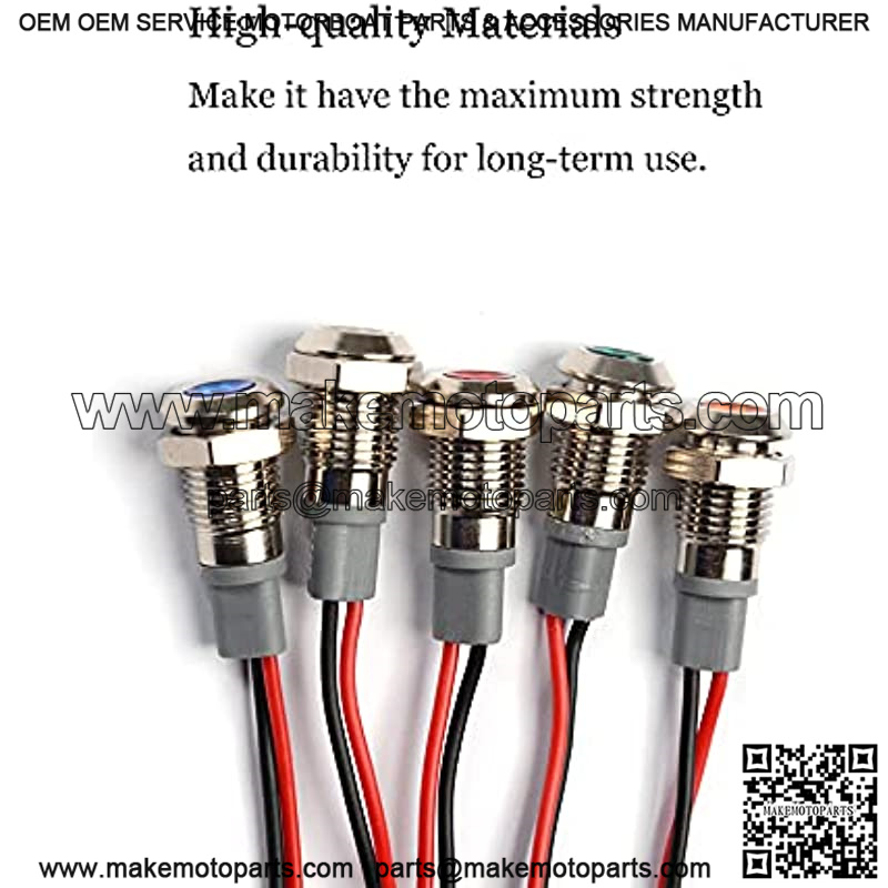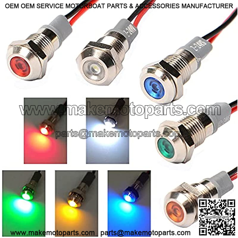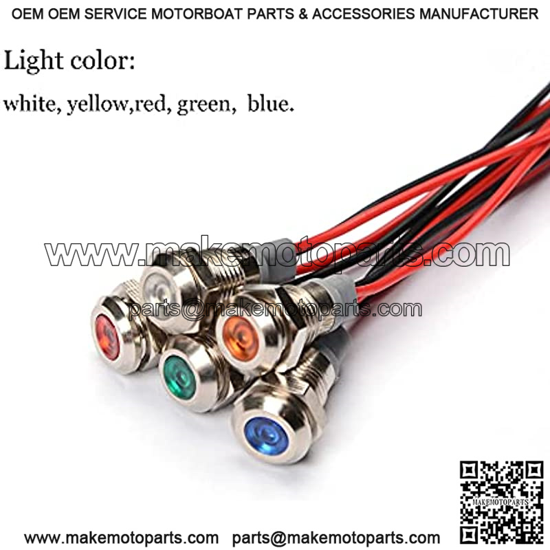 5pcs LED Indicator Light 8mm 1/4″ 12V Metal Waterproof Signal Lamp Power Work Light for Pilot Dash Car Truck Boat (8MM, 1- Mixed color)