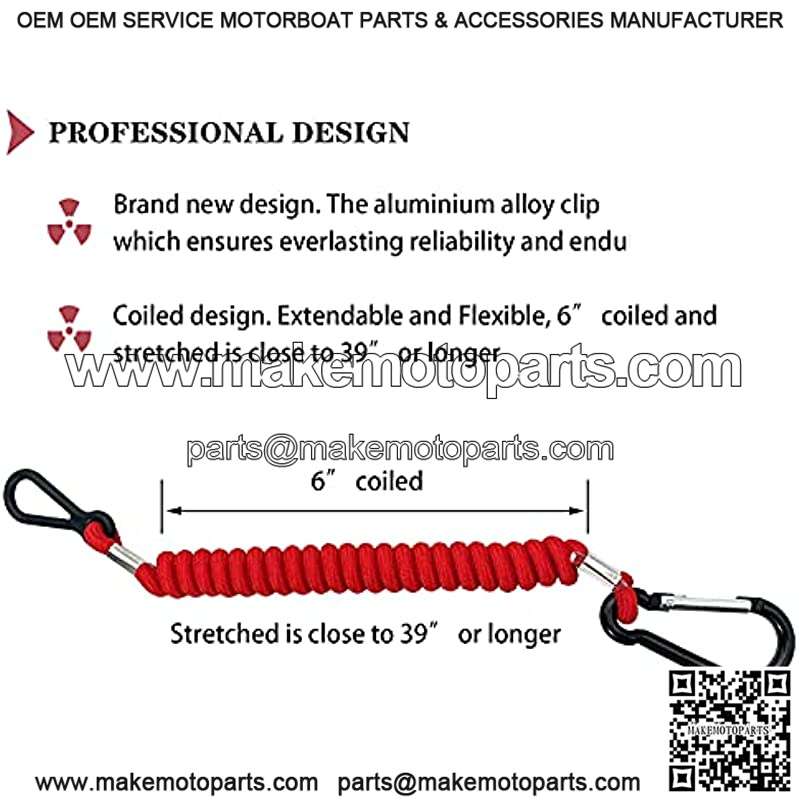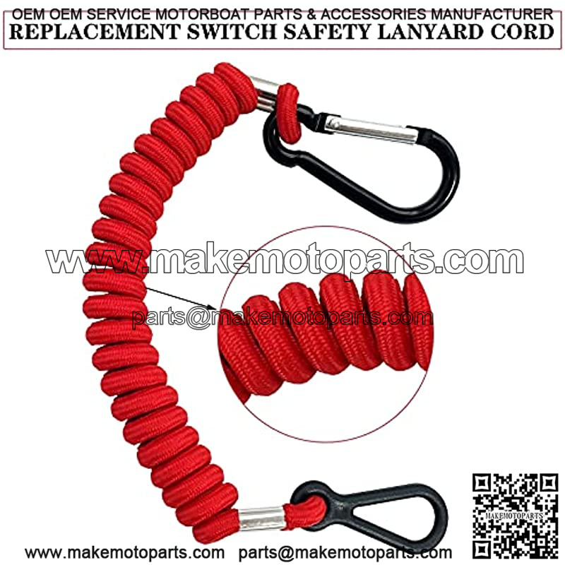 REPLACEMENT SWITCH SAFETY LANYARD CORD – The kill switch lanyard is bright red, coiled, woven nylon coated lanyard with the aluminium alloy clip at operator end and loop style clip at stop switch end. Don’t operate your boat without the stop switch lanyard attached to the boat driver/operator.