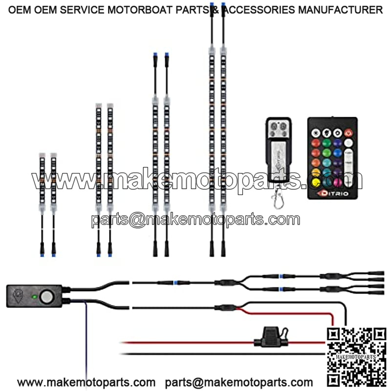 8pcs 12V RGB Underglow LED Strip Light Kit with Brake Light Feature for Compact Motorcycles, M8r