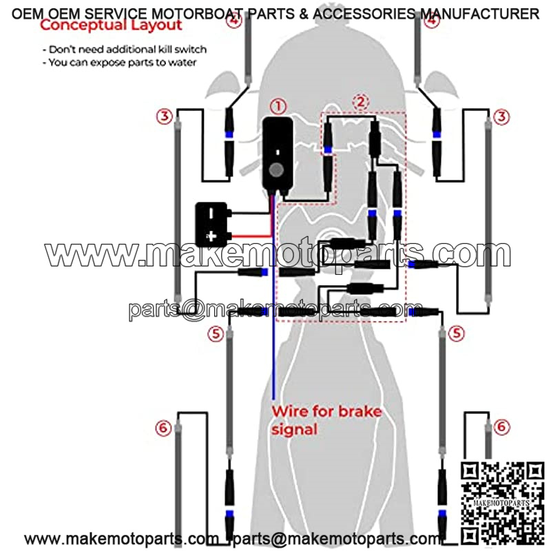 – This LED strip kit M8r has a slim control box WITHOUT an additional bunch of wires for a kill switch