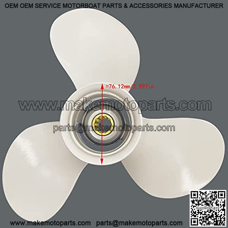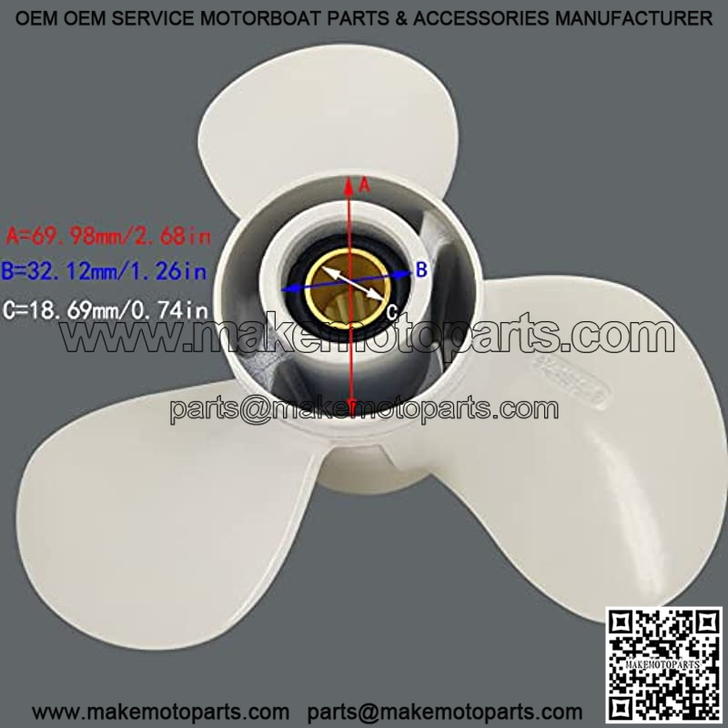 Size & Material – 9 7/8 Diameter x 10 1/2 Pitch; Tooth:10; Rotation: Right; Blade:3 ; Color: White; Material: The material of this marine propeller is made of durable aluminum.