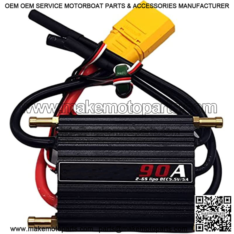 90A Waterproof Brushless ESC Electronic Speed Controller with 5.5V/5A BEC and XT90 4.0mm Banana Head Connector for Model Ship RC Boat