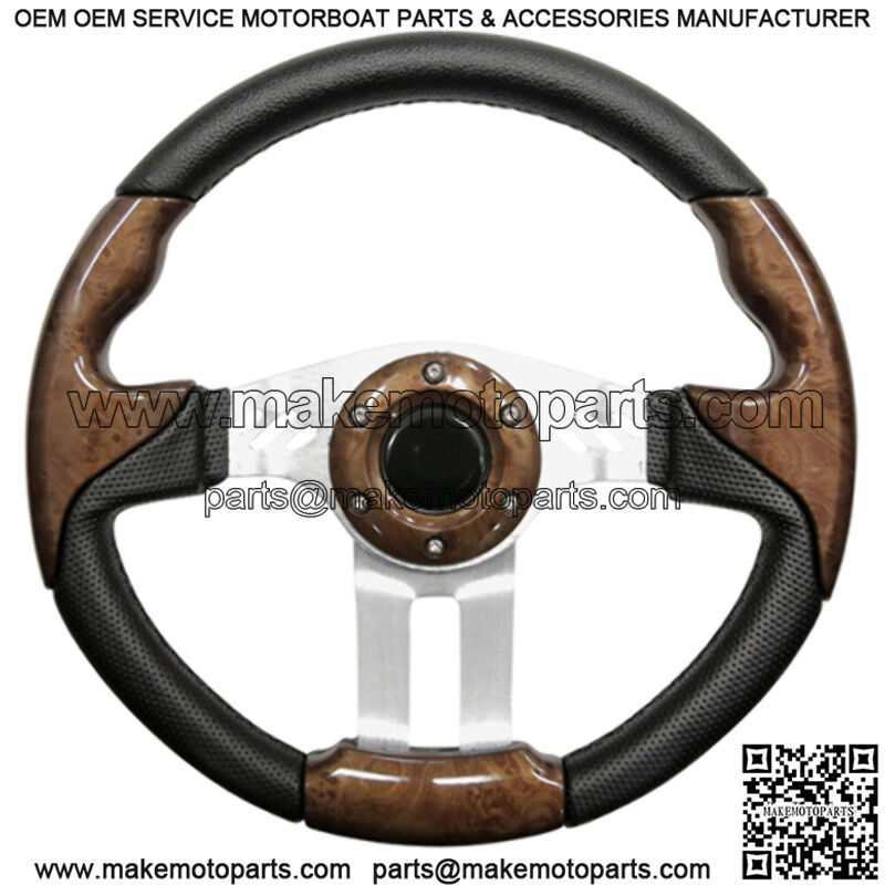 Aviator 5 Golf Cart Steering Wheel (Woodgrain Grip/Brushed Aluminum Spokes)