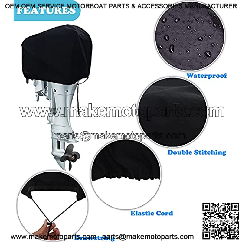 Boat Motor Cover 600D Waterproof Outboard Motor Cover, Boat Engine Cover Universal Size Fits UP-20HP Black 6