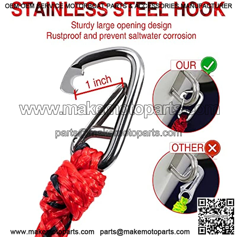 Quick Docking: Just attach the 2 stainless steel hooks to the boat and the quick connector to the tube rope. And boat tow harness keeps the rope tight without worrying about loosening.