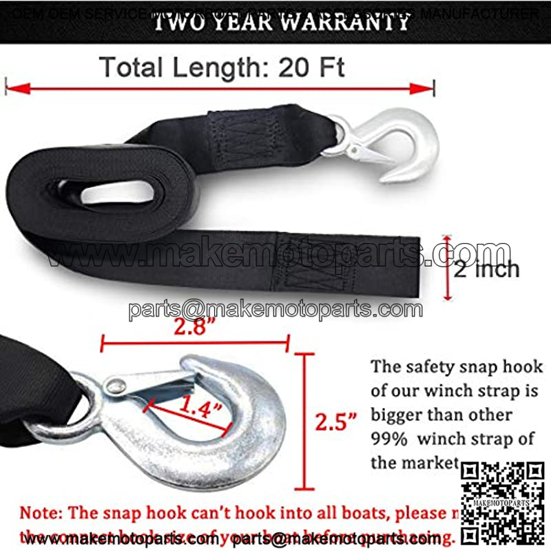 ??PERFECT WINCH STRAP REPLACEMENT??The winch strap replacement is 2 inch wide and 20 feet long. Standard 2 inch width fit for Most Winches, can work for Hand winch and electric winch.