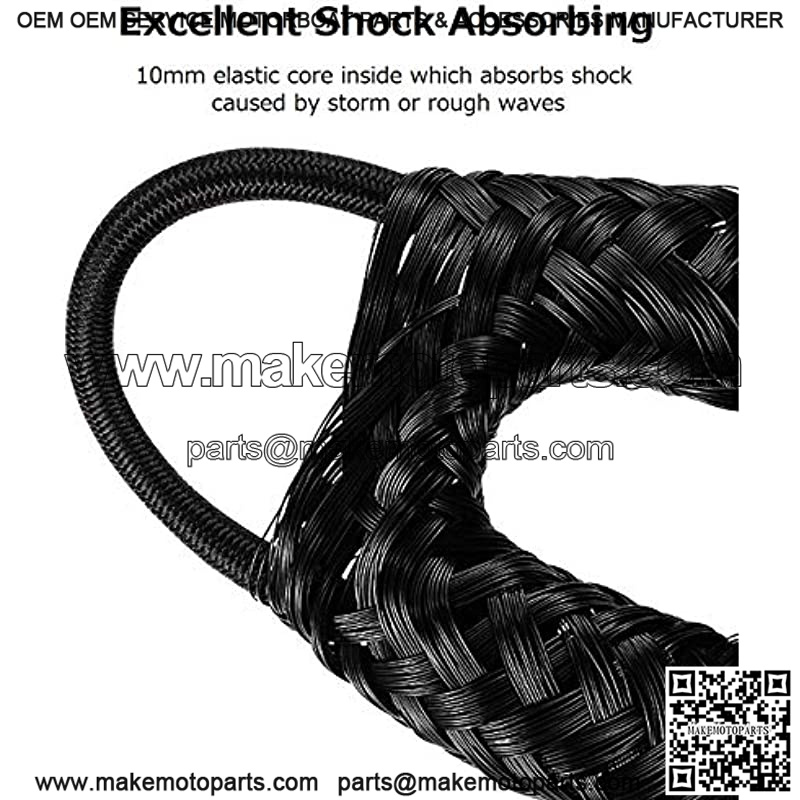 Material: PP and braided PE exterior with 10mm elastic coreDiameter: 16mmUnstretched Length: 4 feet; Stretched Length: 5.5 feetTensile Strength: 2400 poundsPackage: 4 Packs Bungee Docklines (without cleat)