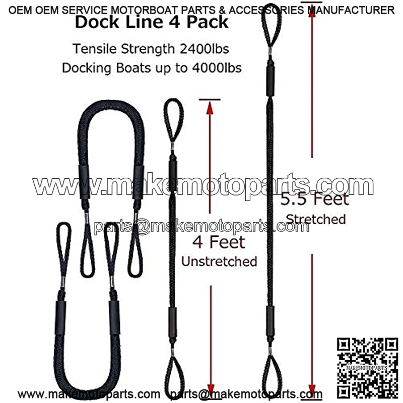 Bungee Boat Dock Line Mooring Rope Boat Accessories Docking Lines PWC Dockline for Boats Kayak, Jet Ski, Pontoon, Canoe, Power Boat WaveRunner, 4 Pack