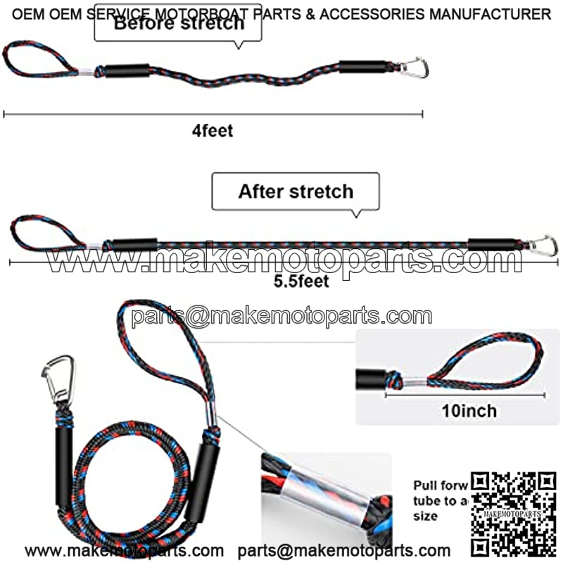 Bungee Dock Lines, Boat Dock Rope, Jet Ski Accessories with Stainless Clip for for Jet Ski, SeaDoo, Yamaha WaveRunner, Kayak, Pontoon Boat, Dinghy (4 Feet)