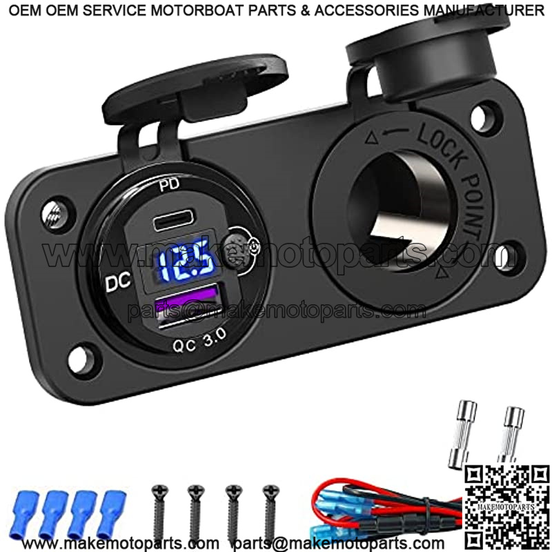 Cigarette Lighter Socket 12 Volt USB Outlet: PD 20W USB C and QC3.0 Car USB Port Aluminum Metal 12V Plug, 150W Car Charger USB Socket Panel with Power Switch LED Voltmeter for Marine Boat RV Golf Cart