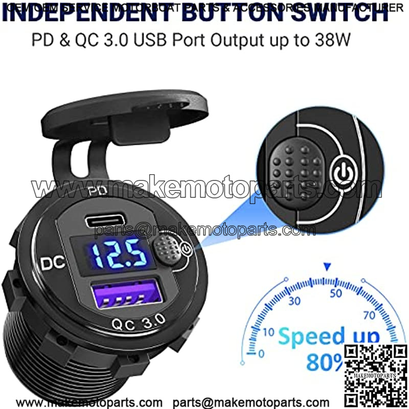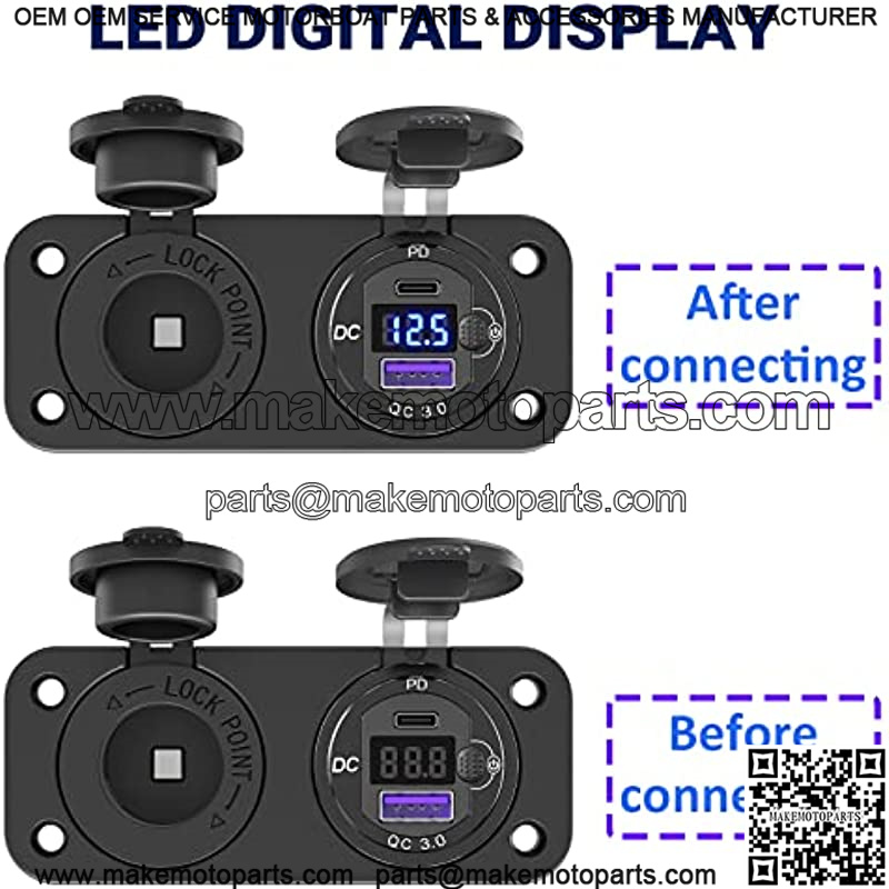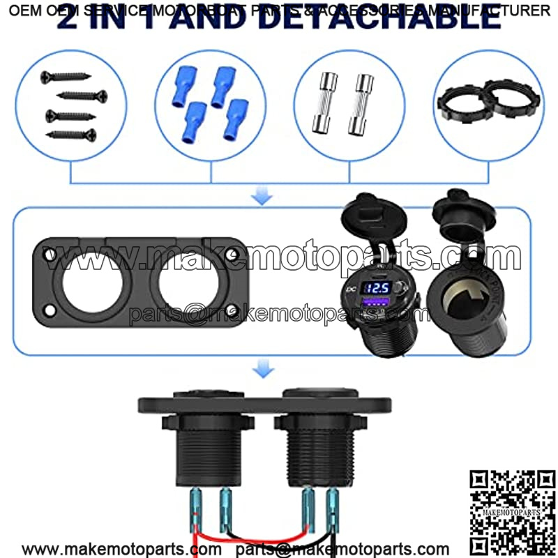 ??2 in 1 usb c charger socket panel??The cigarette lighter panel kit includes an upgraded aluminum metal 12V USB C socket with LED voltmeter & ON/Off button switch, high-power 150W-300W cigarette lighter socket. 2 in 1 compact design, saving space.