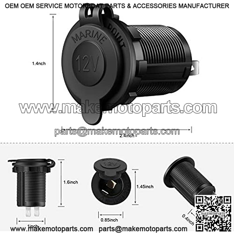 Cigarette Lighter Socket Car Marine Motorcycle ATV RV Lighter SockeOutlet Socket Receptacle 12V Waterproof Plug by ZHSMS