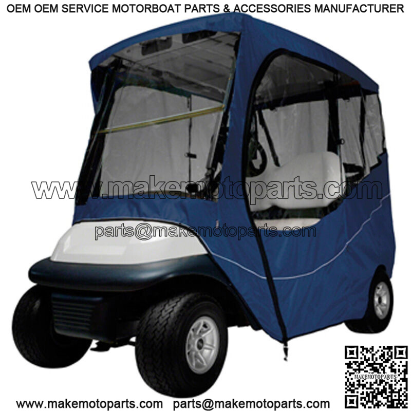 Fast and portable protection against wind and rain for most 2-passenger golf carts with short tops (up to 68″L)