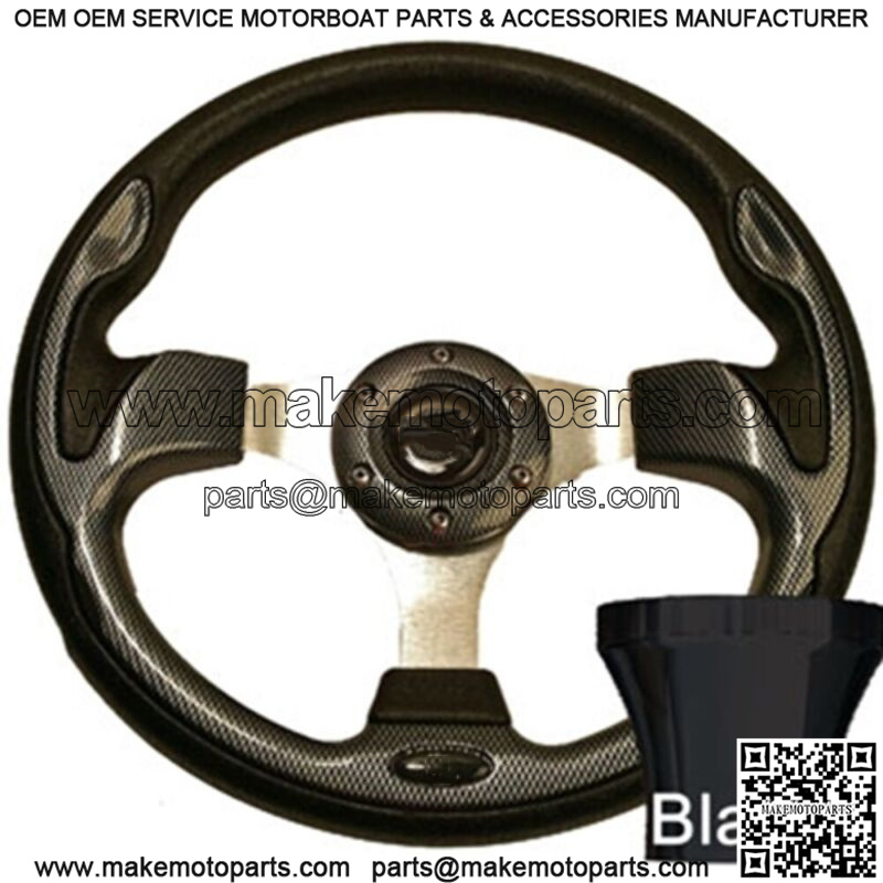 Club Car DS Golf Cart Carbon Fiber Rally Steering Wheel with Black Adapter
