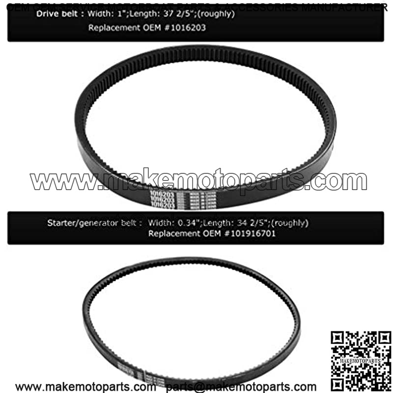 Drive belt and starter belt fit for Golf Cart Club Car DS 1997-UP, Precedent 2004-UP;These are made for FE290 and FE350 motors 1997 to Current.