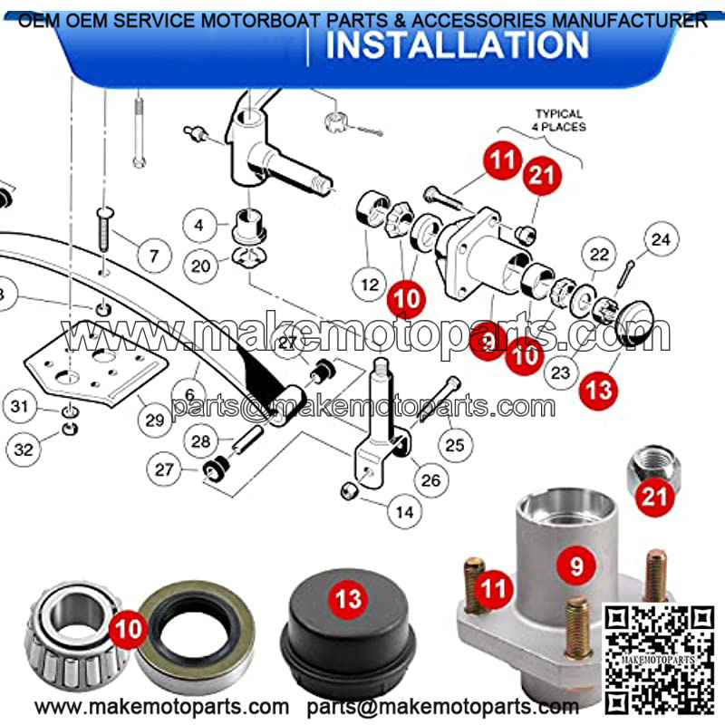 Club Car Front Wheel Hub Bearing Assembly with Dust Caps & Bearings for DS/Precedent Golf Cart Models Replaces OEM # 102357701,1011892,1011889,1011894,11011102,1011153