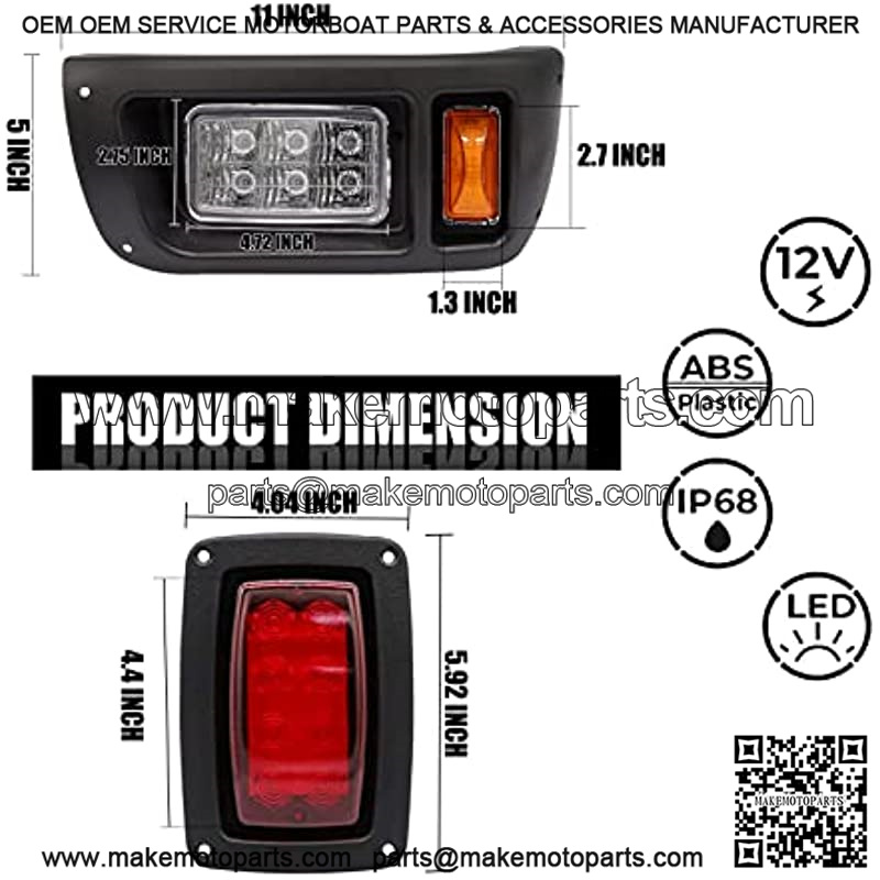 Club Car LED Light Kit 12 Volt Headlight and Tail Light Assembly for 1993-Up Club Car DS Golf Cart OEM 101988001 101988002
