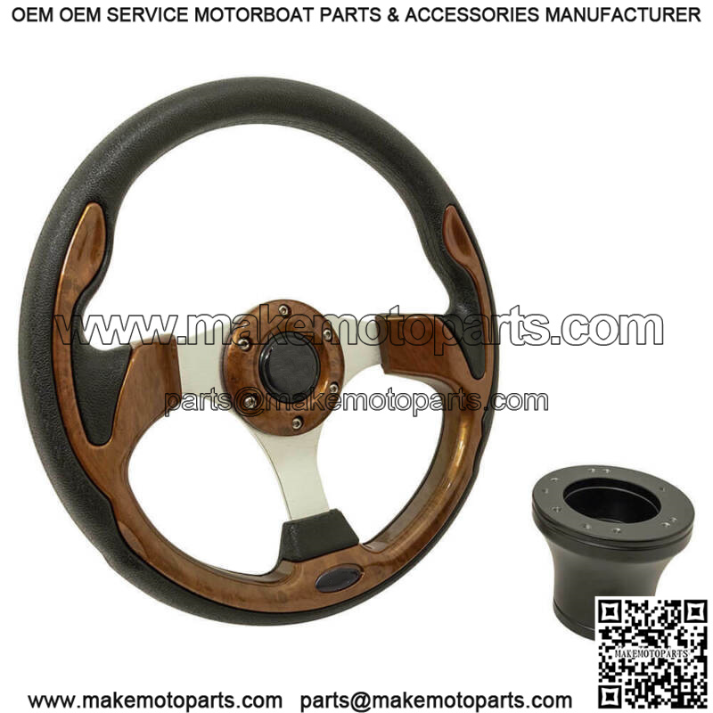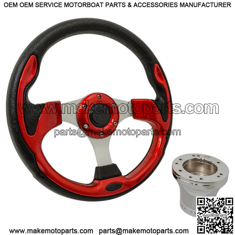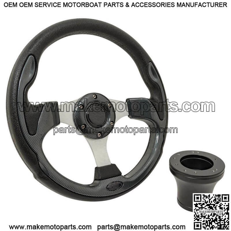 Club Car Precedent Golf Cart Steering Wheel with Chrome Adapter Hub, in Carbon Fiber and Black – 12.5″ Steering Wheel, Carbon Fiber and Black, Chrome Adapter Hub –