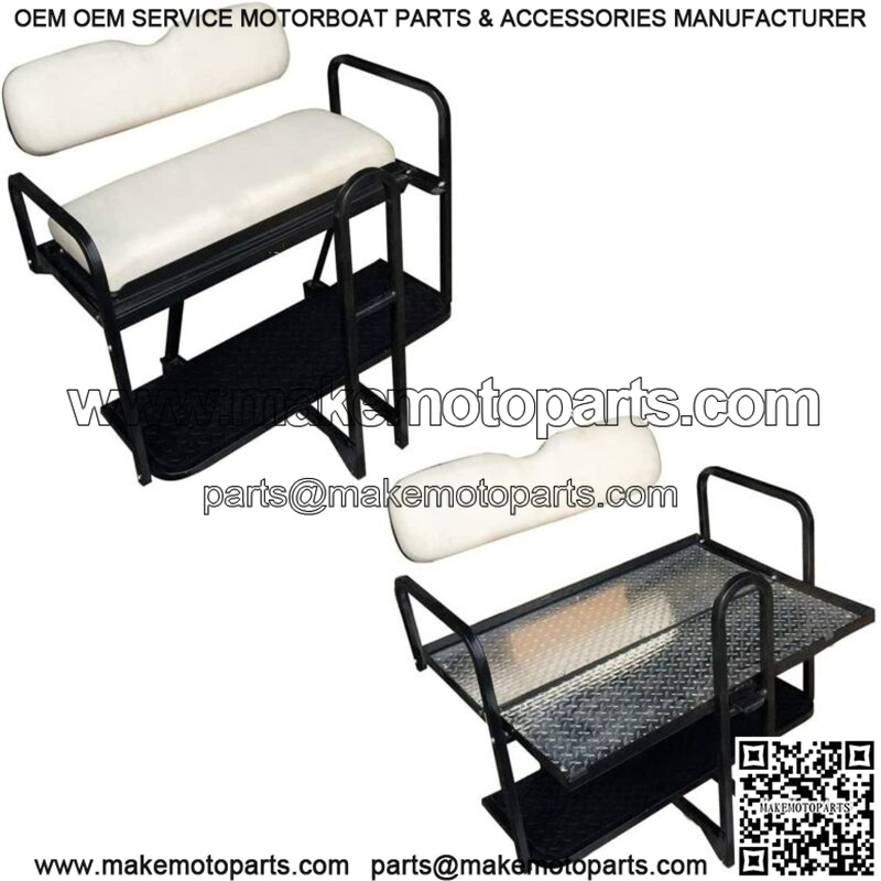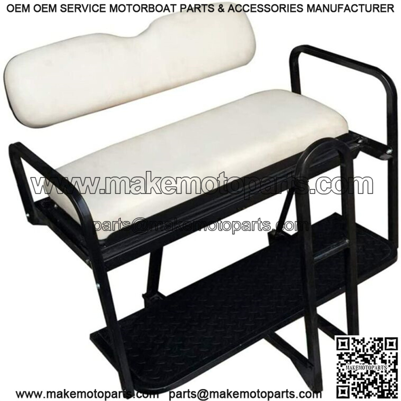 White Color Cushion Flip Folding Rear Seat Kit with Diamond Plate Deck for Club Car Precedent Golf Carts 2004 and Up