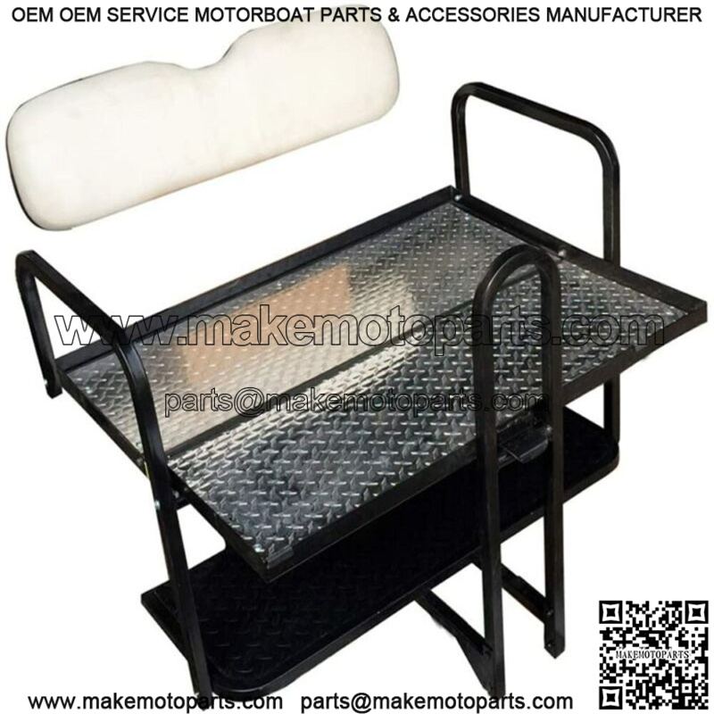 – FAST FREE SHIPPING – FREE SAFTEY GRAB BAR INCLUDED – Brand New, Very Sturdy, High Quality No Fade Seats – – Rear Seat Flips Over and Turns Into A Flat Bed – – Full COLOR Installation instructions – – Direct Bolt on Installation – – Comes with everything needed to complete installation – – In Stock and Ready to Ship to You Right Away – Below is a list of the features: FREE Safety Grab Bar Included Heavy Duty Powder Coat to Resist Fading Marine Grade Vinyl Seats Factory OEM Matched Color Cushions Soft Thick Cushions (Seat Back Rest 35″ W X 7-7/16″ H x 2 3/4″ D, Seat Bottom 37-3/8″ W X 14-3/16″ D X 3-1/2″ Thick) 1 3/8″ Tall 360 Degree Lip Around the Cargo Bed Area when Flipped Open Aluminum Diamond Plate Cargo Bed (38 1/8″ Wide x 29 15/16″ Long, when flipped open) Strong 16 Gauge Frame Design Grab Strap for Easy Opening of Flip Deck Installation Notes: – This kit includes everything needed for installation – To install this kit the factory sweater basket behind the front seat remains in place – Kit includes rear seat brackets – Your existing factory roof supports would be re-used with this seat kit – No Welding or Cutting is Required – Bolt on Installation Design