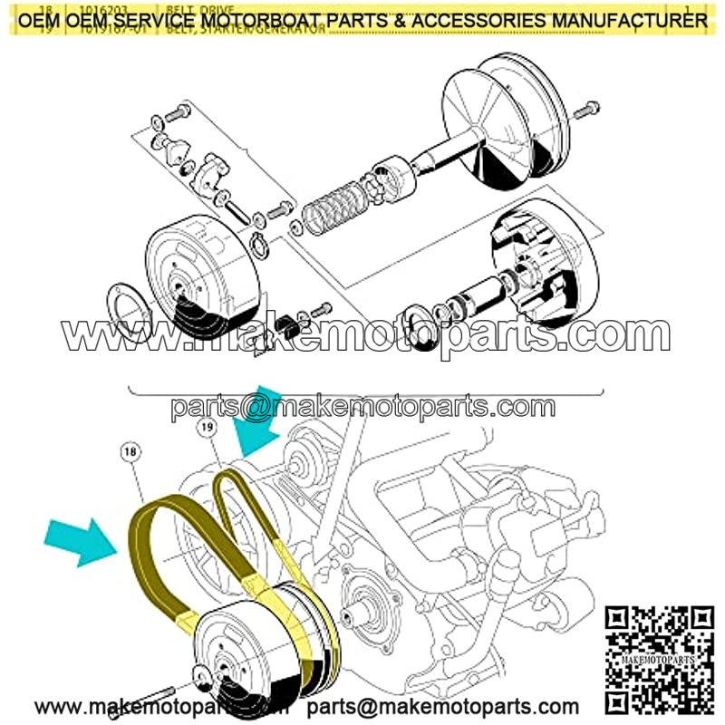 Clutch Drive Belt & Starter Generator Belt Kit for Club Car DS 1997-up, Club Car Precedent 2004-up Gas Golf Cart, Replace OEM 101916701 1016203