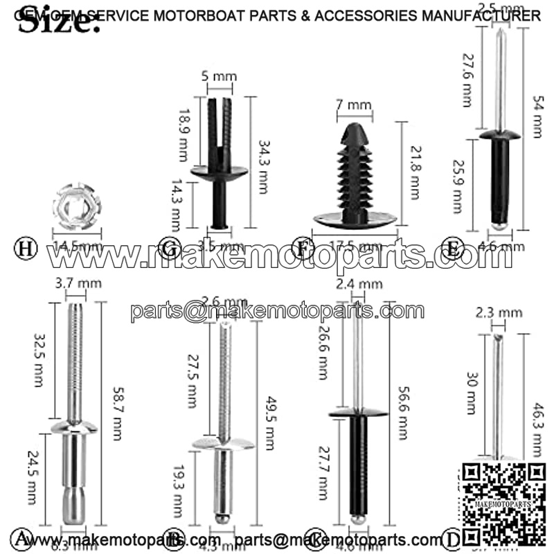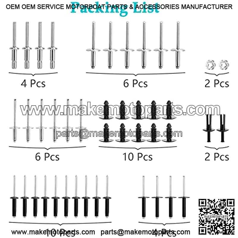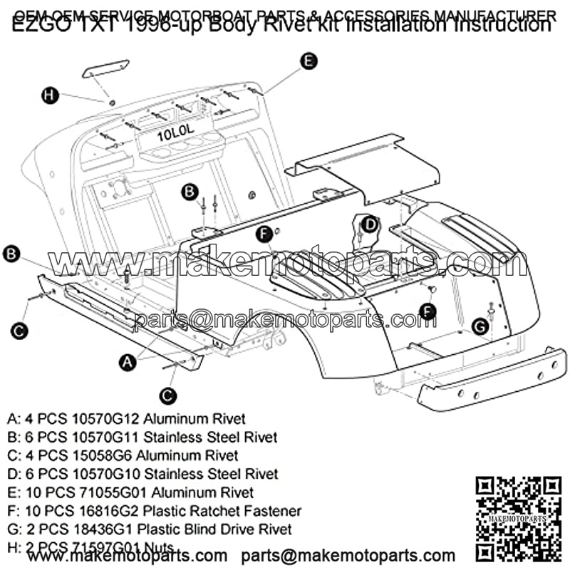 Complete Body Rivet Kit for EZGO TXT 1996-up Models, 42 PCS Aluminum Rivets, StainleSteel Rivets & Plastic Ratchet Fastener, 2 PCS Nameplate Nuts