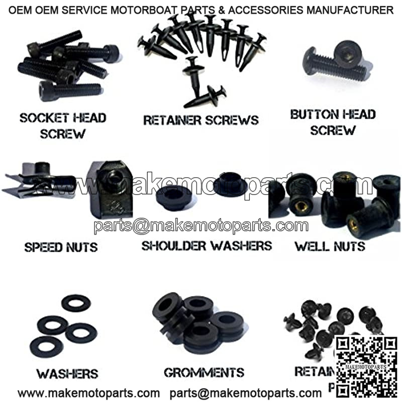 Comes With 102 peices – Including Bolts, Screws, Washers, Grommets, Retainers, Speednuts, and Wellnuts as needed per model