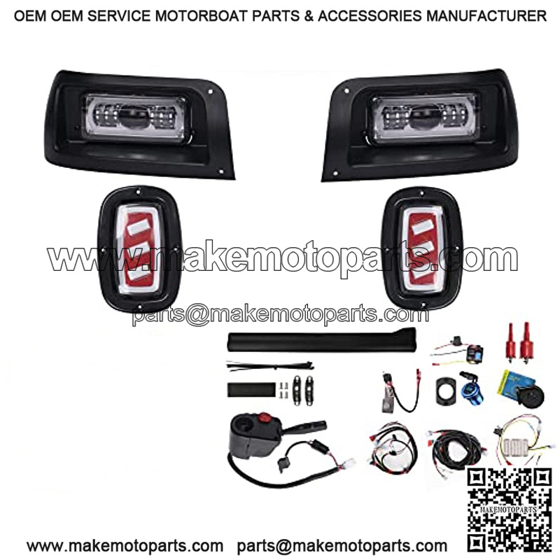 Deluxe Plus LED Light Kit Fit Club Car DS 1993-UP Gas and Electric Golf Cart 20A DC Converter USB Charging Socket Low/High Beam DRL Delay Relay Brake Switch