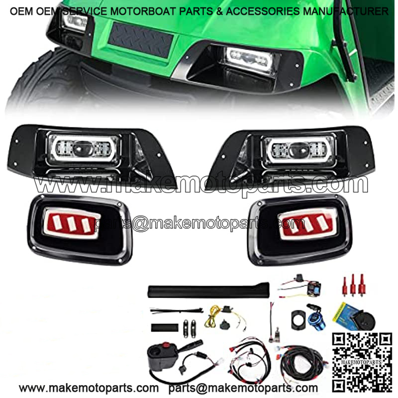 Deluxe Plus LED Light Kit Fit EZGO TXT 1996-2013 Gas and Electric Golf Cart 20A DC Converter USB Charging Socket Low/High Beam DRL Delay Relay Brake Switch