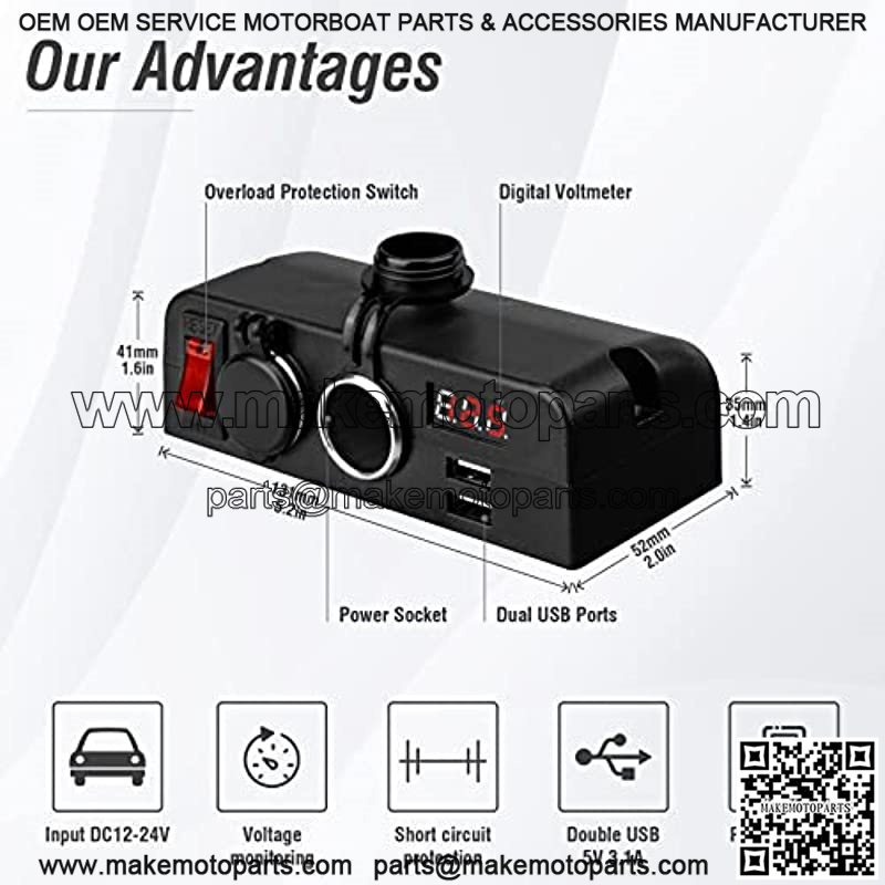 Multi Function??Dual Female sockets and dual USB charge ports allows you to connect multi of your devices at the same time; LED voltmeter which monitories the vehicle’s battery voltage value, it will let you know the health of battery while driving.