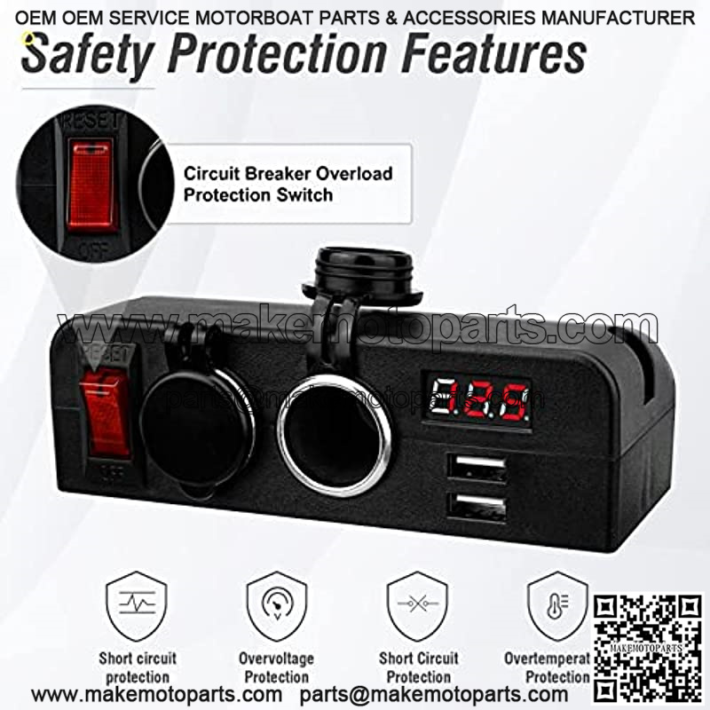 Dual USB Socket Charger,Power Outlet Cigarette Lighter Splitter Adapter with LED Voltmeter On/Off Switches,Voltage detection, for Car Rv Truck Marine Boat Camper Vehicles