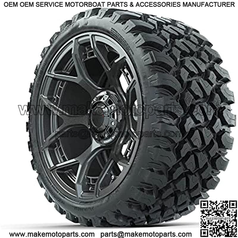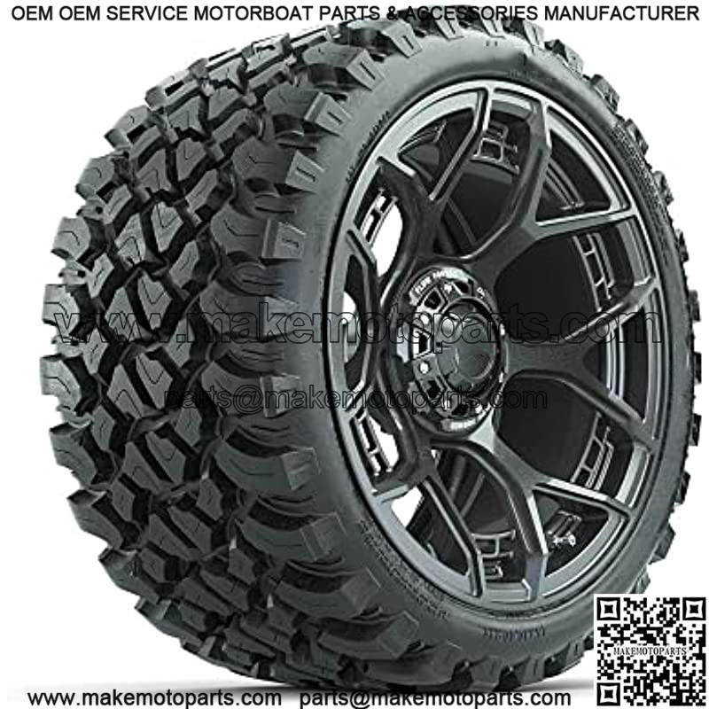 Evolution Gunmetal 15″ Lifted Golf Cart Wheels Mounted on 23″ Steel Belted Radial All-Terrain Tires (23×10-15) | Set of 4