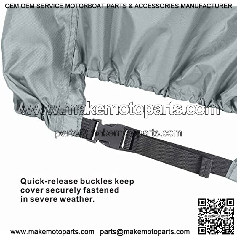 Upgraded Design ?C Quick-release buckle straps in front side allows easy install and remove. Air vent at back side added ventilation for long-term storage situation, reduces inside condensation and wind lofting. Giving your motor all year protection and extending service life.