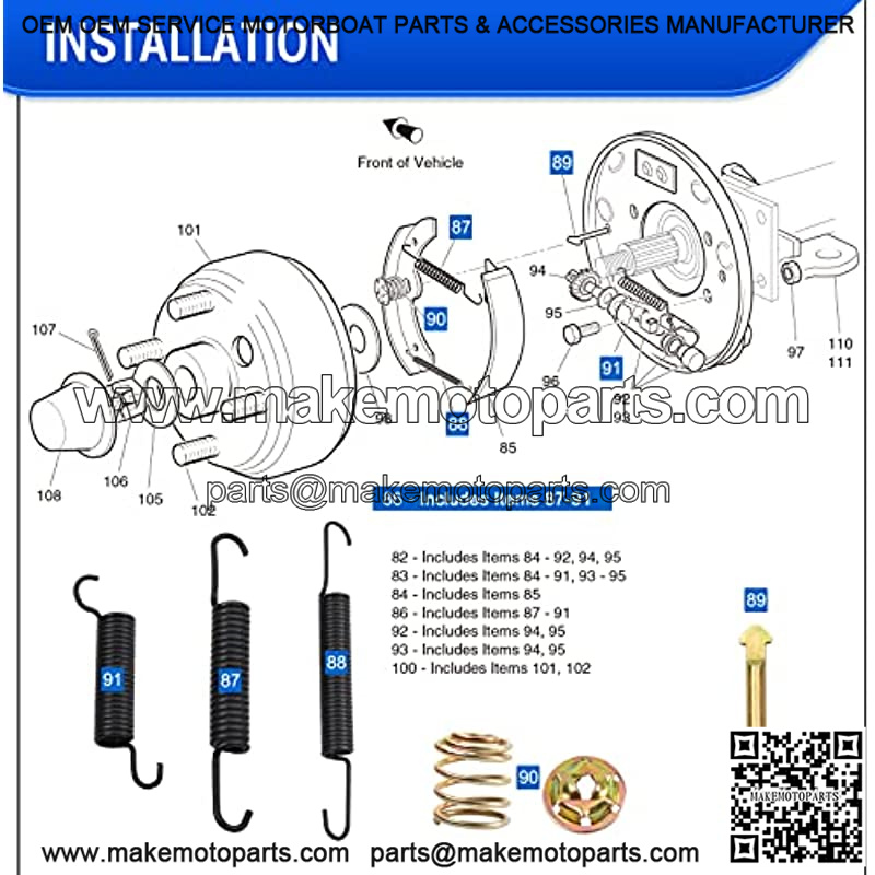 EZGO Brake Shoes Pads and Spring Kit for 1996-Up TXT/ST350/Workhorse and Yamaha 1993-Up G14, G16, G19-G22 Golf Cart Models Replaces # 27943G01, 70794G01, 70795G01