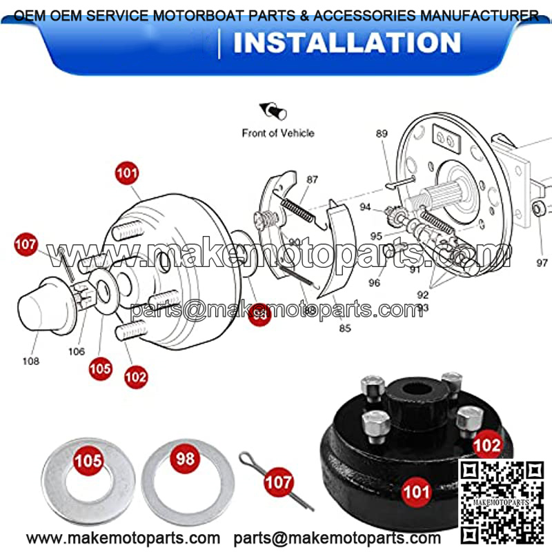 EZGO TXT Brake Hub Drum Assembly with Nuts for 1982-up Electric & 1982-1993 2 Cycle Gas Golf Cart Models Replaces OEM # 19186-G1P, 17298-G1, 17082-G2