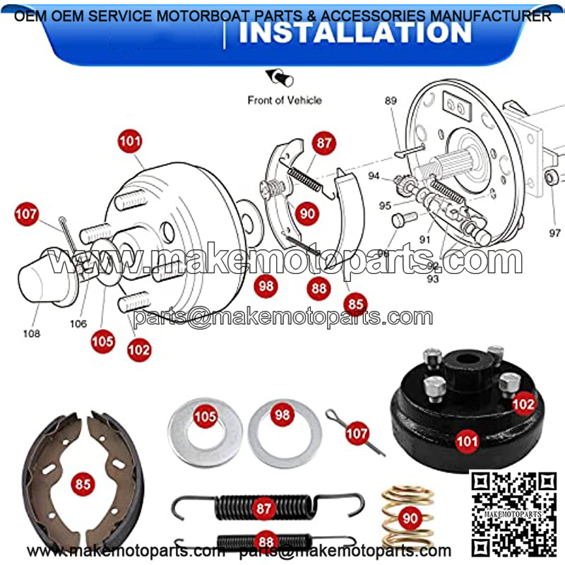 EZGO TXT Brake Hub Drum & Brake Shoes & Brake Shoes Springs Repair Kit for 1996-up Electric Golf Cart Replaces OEM # 19186G1, 70794G01, 70795G01, 27943G01, 27945G01, 27944G01