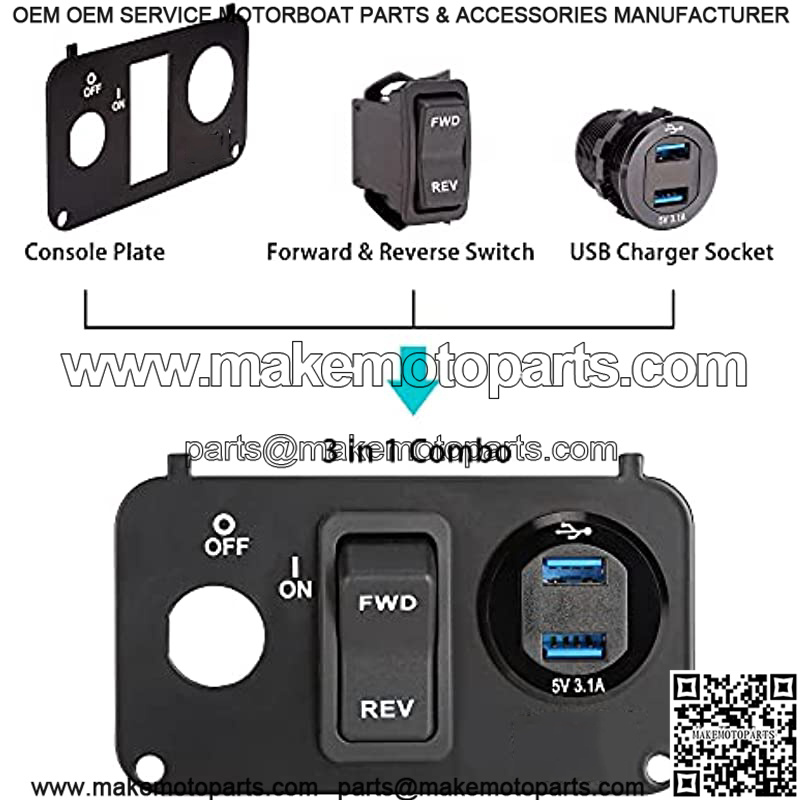 It is a console plate that comes with forward reverse switch(OEM part# 74323G01), USB charger socket with digital volt meter.