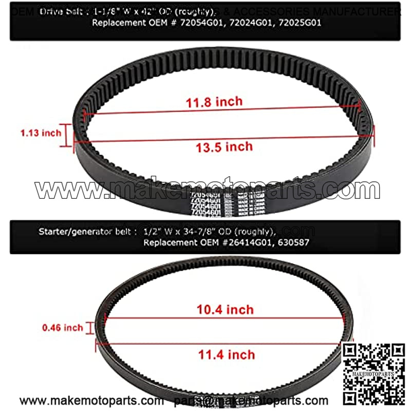 EZGO TXT Gas Drive Belt & Starter Belts Kit for EZGO 4 Cycle Gas Golf Cart TXT Cushman ExpreMarathon Medalist ST Vehicles Terrain 1994-2013, OEM # 72054G01, 72024G01, 72025G01, 26414G01