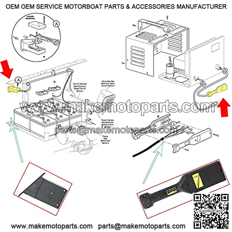 EZGO TXT Medalist 36V PowerWise Charger Receptacle and W/Handle Plug Fits Electric 1996 UP Golf Cart 73345-G01&73063-G01
