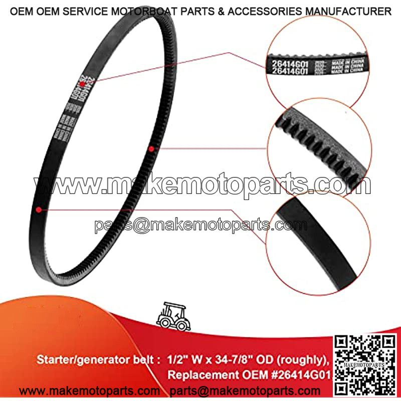 EZGO TXT/Medalist Clutch Drive Belt & Starter Generator Belt Kits for 4 Cycle Gas 350cc/295cc 1994-up Golf Cart Models OEM #72054G01,72024G01,72025G01,26414G01,630587