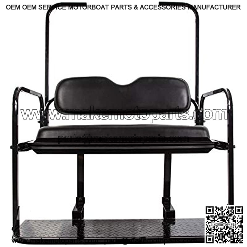 Flip Folding Rear Back Seat Kit Compatible with EZGO TXT Golf Cart | Black Cushions | 1995 & Up